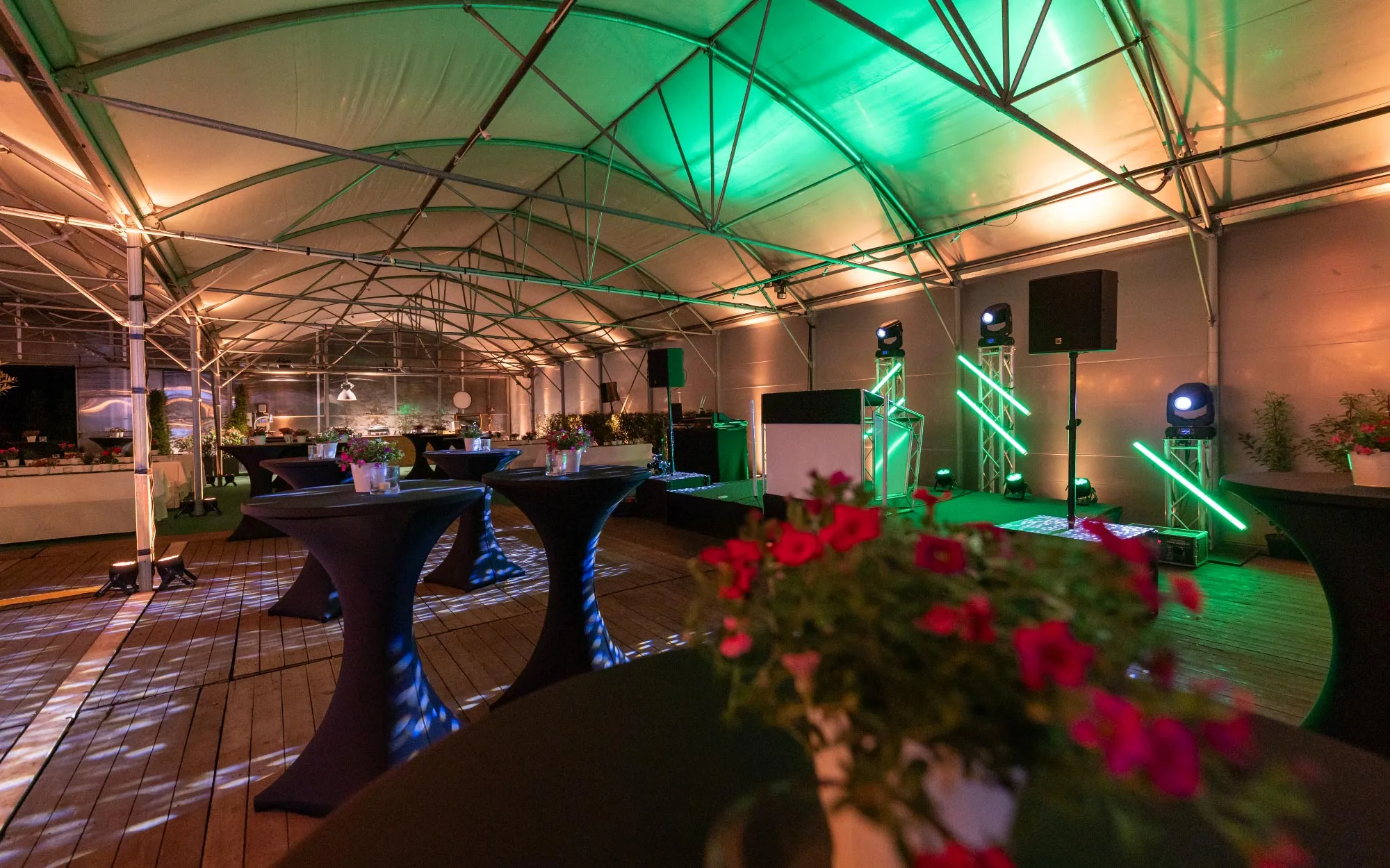 Doch ein Gewächshaus ist keine klassische Eventlocation. Es gibt keine vorhandene Infrastruktur, keinen festen Stromanschluss, keine installierte Technik.